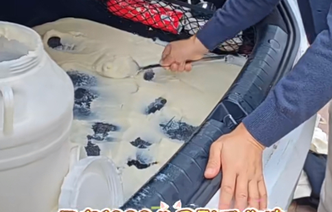 2月27日,广东东莞。男子带着妈妈准备的猪油满心欢喜返程,没成想堵车3天3夜后猪油直接被热化流满后备箱。男子表示,1200公里开了三天三夜,打开后备箱才发现满后备箱的猪油,根本装不完,感觉很是心疼。