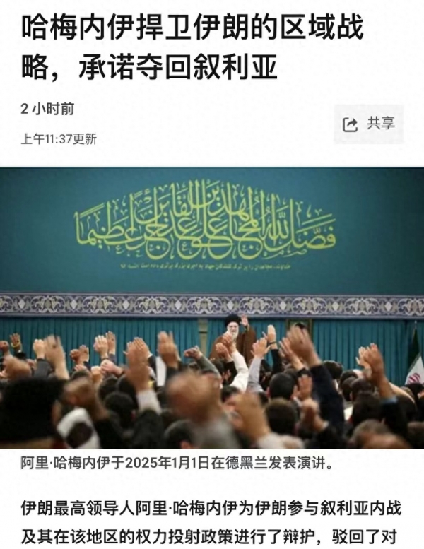 哈梅内伊在演讲中,隐晦地提到叙利亚新强人沙拉最近又是穿西装,又是任命女性担任要职,还要组织团结政府等对西方示好的情况。