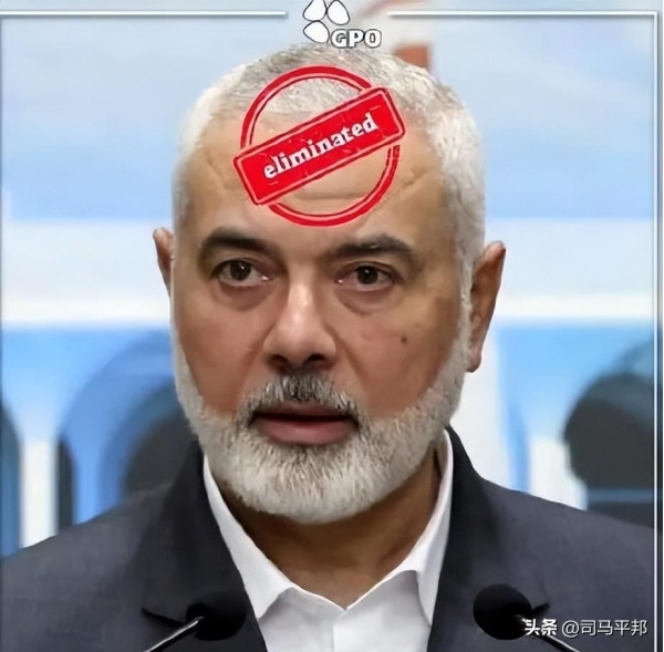 以色列政府新闻办公室在社交媒体上发布的哈尼亚的照片,并配文"被干掉"