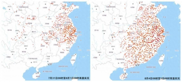而且江苏南部、上海、浙江、安徽南部等地,一天当中的高温时长也将达到10小时左右,局地甚至能达12至13小时,属于"超长待机"。