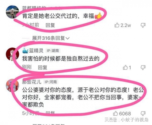 也有网友表示:公公婆婆对你的态度,源自于老公对你的太低。老公对你好,全家都宠着,老公不把你当回事,婆家一家都会欺负你。