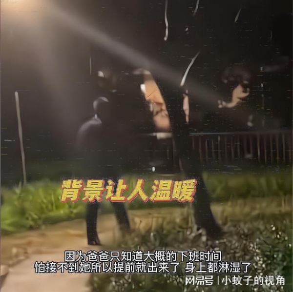 女子说:那天天空还下着小雨,公公不知道儿媳具体的下班时间,又怕错过了那段距离,只好提前下楼等着,也没有打伞,身上都淋湿了。