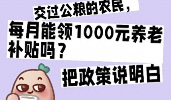 有人问交公粮农民有无专门补贴,目前全国没有统一的每月1000元补贴,但各地可能有地方性优惠,比如提高城乡居民养老保险缴费补贴或养老金待遇,可关注当地政府通知。
