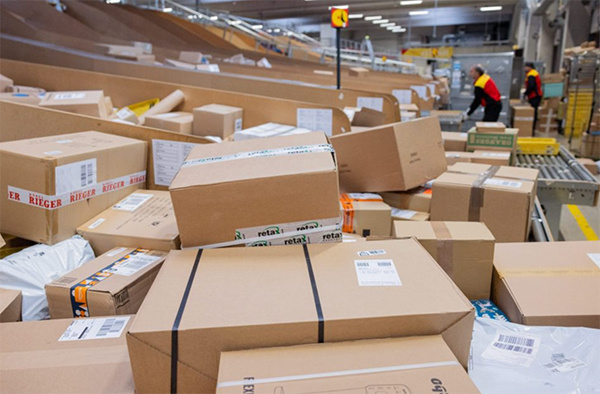 德国快递员在配送站分拣包裹。 欧盟新闻中心