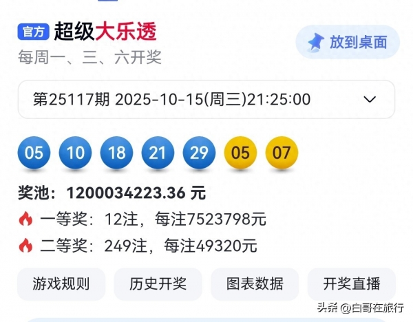 10月15日晚,体彩超级大乐透第25117期开奖,全国共开出12注一等奖,单注奖金高达752万元。其中,山东省一举斩获2注,成为本期大乐透开奖的大赢家之一。