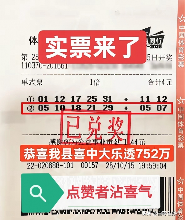 这位幸运儿仅投入4元购买了2注号码,便精准命中了752万元的头奖。