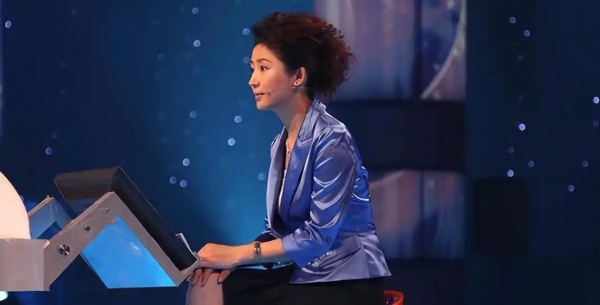 她会伸出右臂一放、一收、一抓,然后喊出"请听题!"当选手回答完问题后,她会故作高深地沉默片刻,然后拉高声音问:"确定吗?"