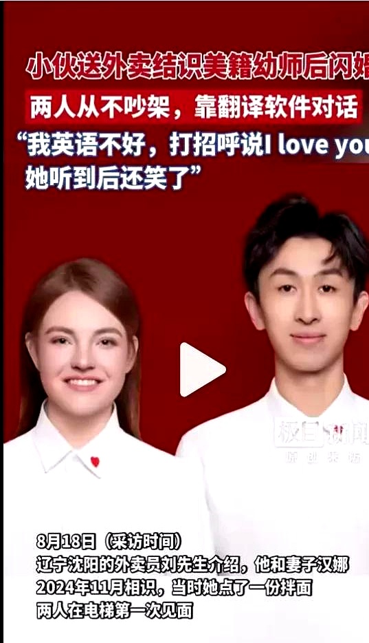 辽宁小伙送外卖遇见美国姑娘电梯搭讪,5个月就闪婚,房车彩礼全不要