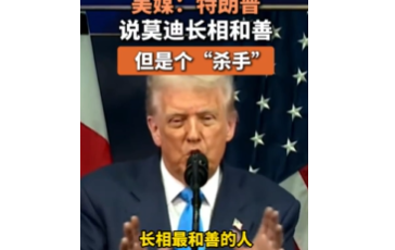 特朗普还形容印度总理莫迪是"长相最和善的人",看上去就像是一位父亲,但同时也"是个杀手","他是个狠角色"。