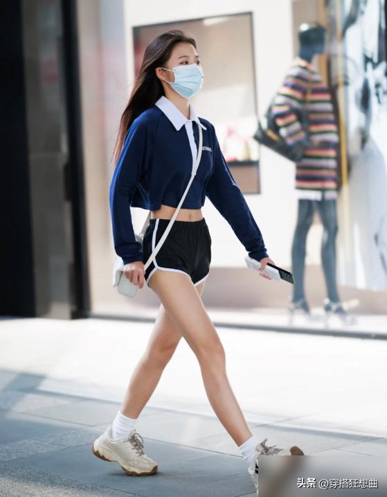上衣也有讲究:短但别太短,露腰到肚脐下两指最舒服;版型要修身,松松垮垮的上衣会把"露腰"变成"显胖"。如果腰腹有一丢丢肉也别怕,选带点弹性的针织面料,既能藏住小肚腩,又能勾勒出自然的腰线。