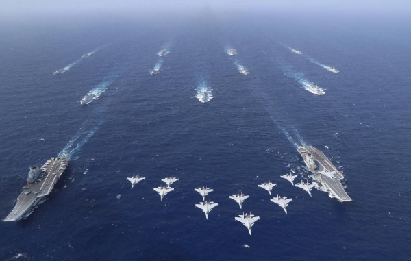 据悉,日前解放军在台四周分上下午,分别进行海空联训,一共出动29架军机,6艘军舰,2艘公务船,其中12架军机持续在台岛南部、东南部绕行,疑似进行远航训练。