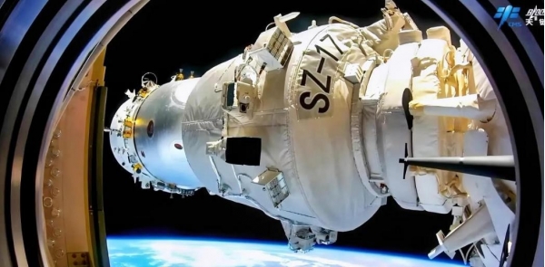 "天宫"空间站舷窗看神舟飞船