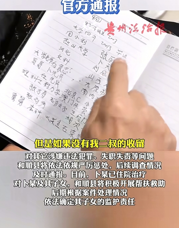 如今,卜女士在医院接受系统治疗。哥哥说,病情已有明显好转,她能认出家人了。这是个缓慢却真实的好转迹象。张某军的侄女曾提及,在事发后,考虑到孩子,当地为张某军家更换了住处,添置了生活用品。两个孩子平日住校,周五才回家。