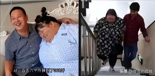 中间陈皖枝也动过减肥的念头,可胡建国那句 "你放心吃,我会永远爱你",让她打消了顾虑,体重也一路突破 200 斤、300 斤大关。