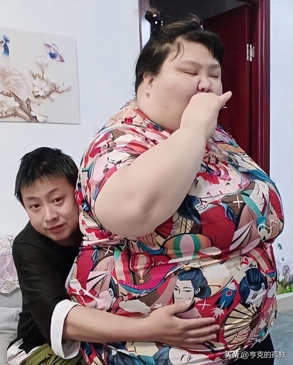 丈夫胡建国笑脸盈盈的抱着300多斤的妻子说道:"她太美了,只要我把她喂胖,她就只属于我一个人的了!"