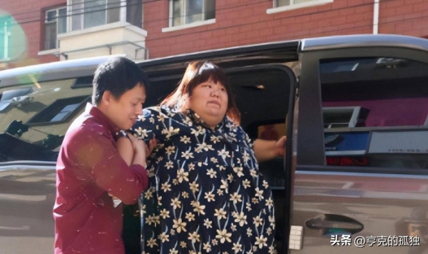 婚礼当天,由于她过于肥胖,婚纱根本穿不上,只能临时找了一件宽松的礼服代替。