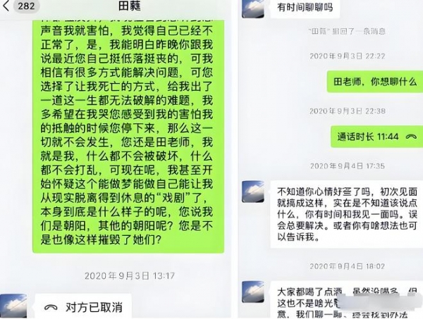 事后,田蕤通过微信进行言语威胁,声称:"这是圈内潜规则,敢声张就别想在话剧界立足。"