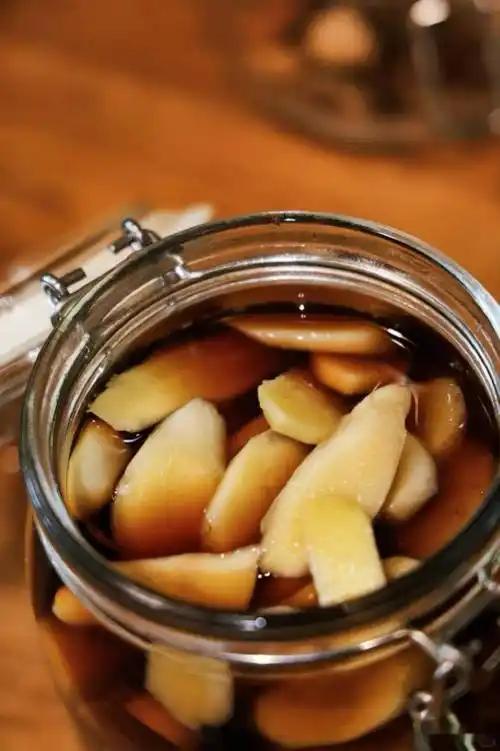 现在人总吹空调、吃冷饮,脾胃容易虚寒。鲜嫩姜切片,用米醋没过,再加点冰糖,密封泡3天。每天早上吃2片,脆爽不辣,还能开胃口。我同事试了半个月,以前没胃口吃早餐,现在能多吃一个馒头,消化也变好了。