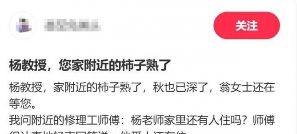 杨振宁先生在的时候,曾亲手种下了几棵柿子树。现在秋风一吹,红红的柿子熟透了。可没人去摘,它们就那么挂在树上,过几天就掉了一地。