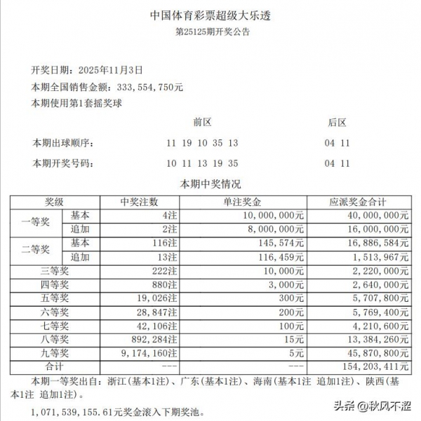 本期大乐透销量为3.33 亿,筹集社会公益金 1.20亿。