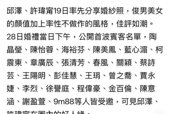 11月28日,台北文华东方酒店,许玮甯和邱泽把"拍戏"换成"拍婚照",一场婚礼直接把热搜拍成连续剧。