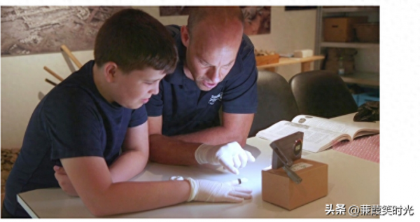 小男孩介绍,他平时的爱好,就是收集些岩石化石,有一次他随父亲去一个迦密山采石场玩,突然就看到了个绿色物体,起初以为是生锈的铜螺丝,好奇心促使他捡了起来,打量一番后,小男孩觉得这个"螺丝"不是现代产物。