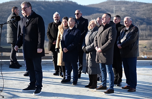 【武契奇视察由中国企业承建的"多瑙走廊"快速路项目在现场发言】