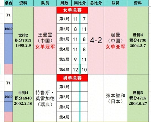 第五第六局蒯曼打得太好了,她找到破解之法,也让曼昱差点就要打七局大战,只是蒯曼毕竟还年轻,假以时日,随着经验的积累,她会有一个耀眼的未来,就象现在的莎莎和曼昱!