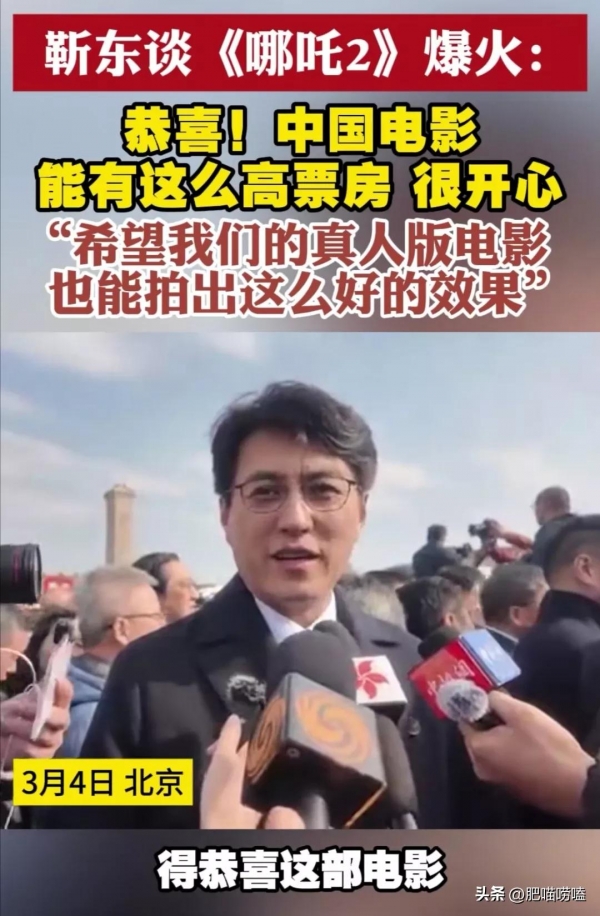 在现场,靳东被问到「是怎么看《哪吒2》火爆全球的?」