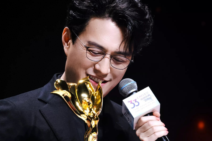 在台上拿到奖杯的时候,靳东笑的像个孩子拿到糖一样,喜不自胜。