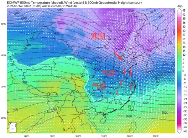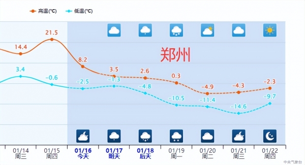 根据我国发布的权威预警指出,受寒潮影响,1月17日至21日,我国大部地区将自西北向东南出现降温大风,日平均或最低气温普遍下降6~12℃,黄淮、江淮、江汉东部、江南中西部及贵州东部、广西北部等地部分地区下降12~14℃,局地降温可达16℃以上,1月21日早晨,最低温度0℃线将南压至贵州至浙江南部一带。