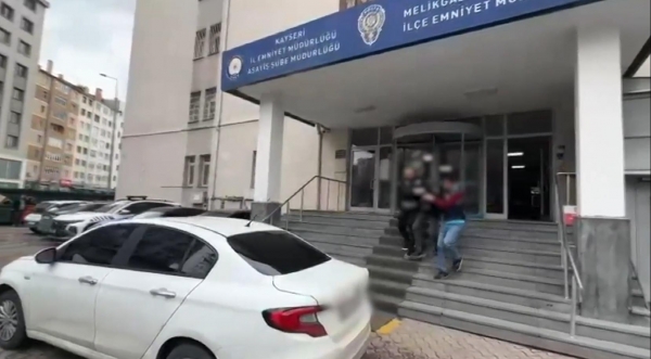 当地警方在土耳其中部开塞利将一名嫌疑人扭送进汽车。