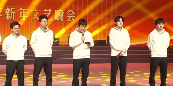 年会还有直播,王楚钦作为代表率先发言,面对台下众多观众,他起初略显紧张,但还是顺利完成发言并提前送上了新年祝福。随后登场的梁靖崑则全程盯着提前准备好的卡片发言,生怕出现念串台词的情况,两人同框的画面充满欢乐。
