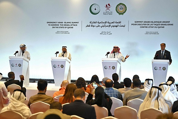 9月15日,阿拉伯-伊斯兰国家紧急峰会发表联合声明,谴责以色列袭击卡塔尔。 视觉中国