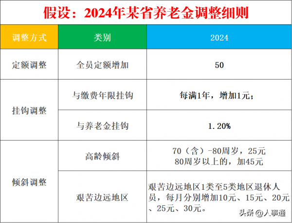 人社部养老保险司相关负责人介绍,2024年,将继续采取定额调整、挂钩调整与适当倾斜相结合的办法进行调整。