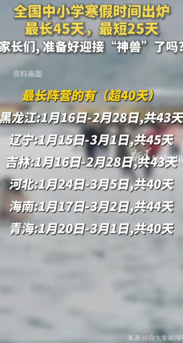 2025年4月,全国中小学寒假时间新鲜出炉,最长45天,最短25天,这差距可把家长们整懵了!