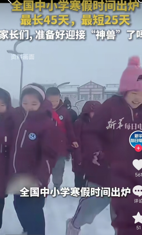 这寒假时长的差异,其实也和各地的气候、教学安排有关。北方冬天冷,寒假长点方便学生避寒;南方相对暖和,寒假就短些。但对家长来说,这差距带来的是完全不同的"带娃节奏"。短寒假的家长可能刚适应孩子不在家的日子,就得准备开学;长寒假的家长得绞尽脑汁安排孩子的学习和娱乐,不然这么多天可咋熬。