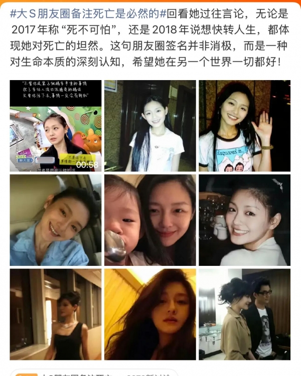 吴佩慈深夜发文,表达了对好友大S的深深思念。"好朋友很潇洒的走了,留着她在微信朋友圈备注的那句,死亡是必然的,"她写道。