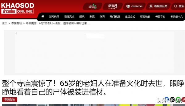 泰国媒体新鲜新闻11月23日、24日连续报道了一件稀奇的事情。65岁的泰国妇女素萨患有脑癌和痴呆症,11月22日19:00出现了呼吸停止的症状,家人检查后发现她的心跳已经停止,确认死亡。