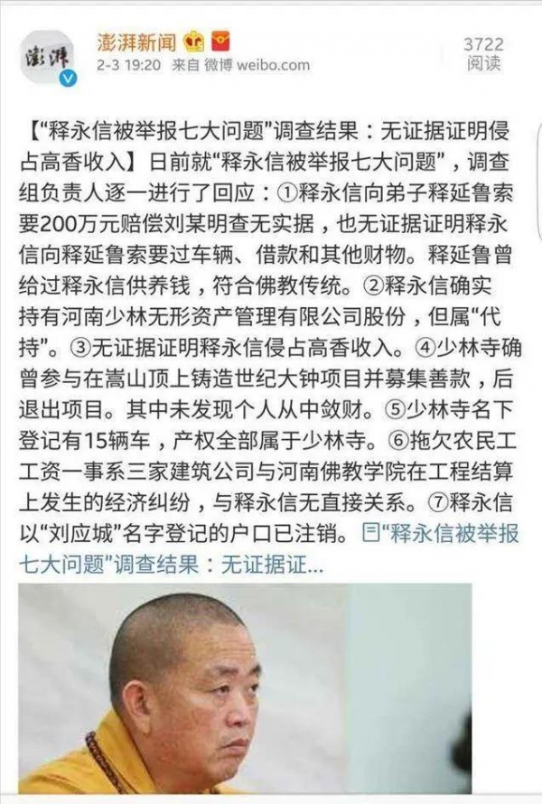 少林寺方丈释永信的社交账号定格在7月24日清晨6点58分--这个七年来平均每天发布1.5条动态、从未间断的"网红方丈",突然陷入一片死寂。