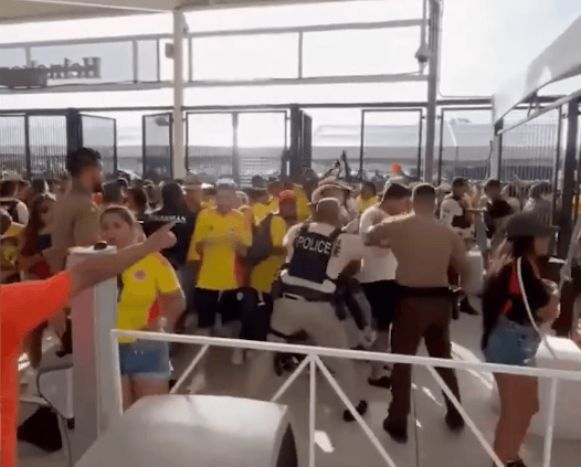 1.入口区数量不足,很多球员的家属本应通过专有通道进入场地观赛,但办赛方却并未为球员家属准备专有通道,导致早到赛场的大量球员家属(数百人)拥堵在了一般通道门口(无法正常入场)。通道口又发生了大量的球迷(或闲杂人等)斗殴、骚乱事件。以至于连一直拉胯的阿根廷国家队都突然敞亮了起来,调集了自己的安保人员来为球员家属提供保护。