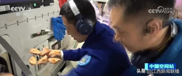 此前,两个乘组在空间站会师之后,6名航天员使用刚刚被带上太空的新装备--热风烘烤机,在空间站做了一顿烧烤大餐,庆祝中国空间站第7次太空会师。