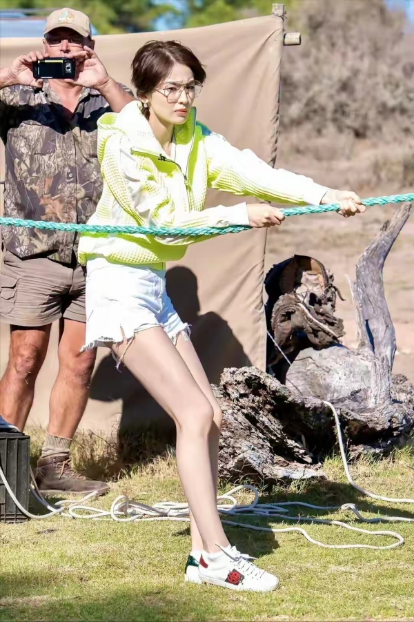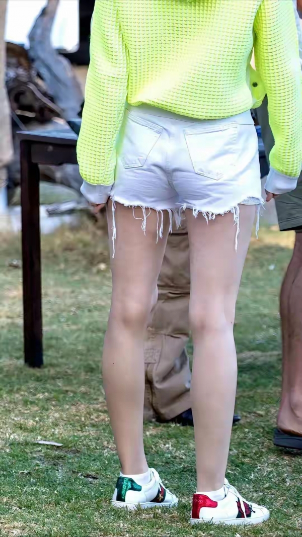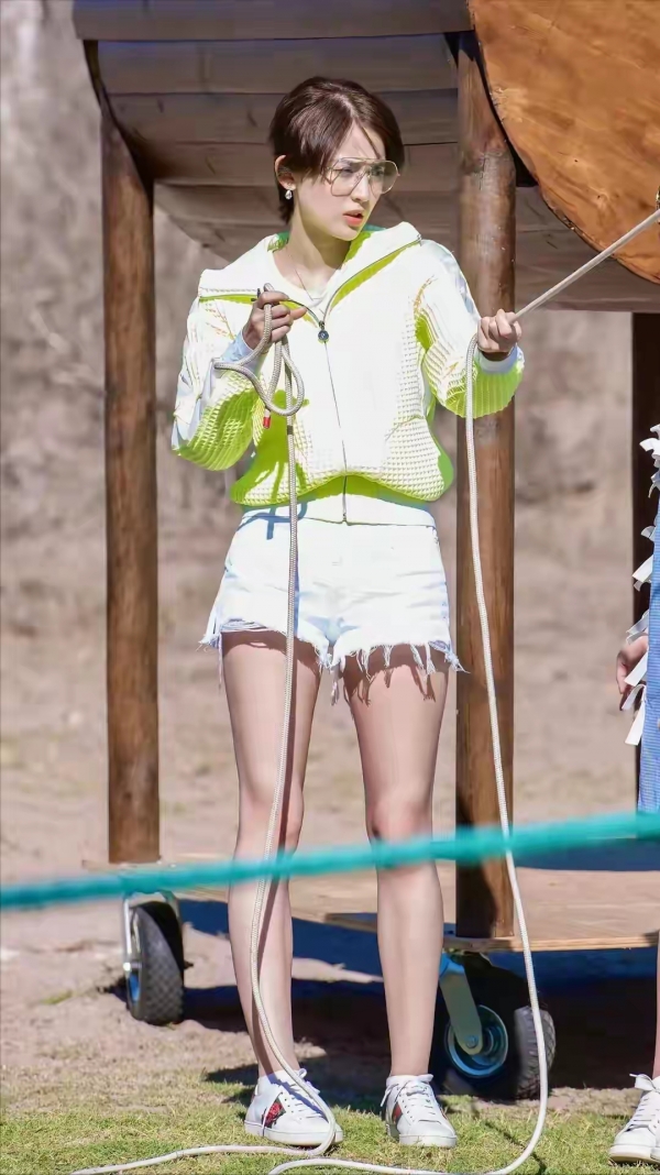 第二就是古力娜扎喜欢穿搭气质,特别是白色超短裤更显身材紧致,配上绿色上衣真是绝美身材!