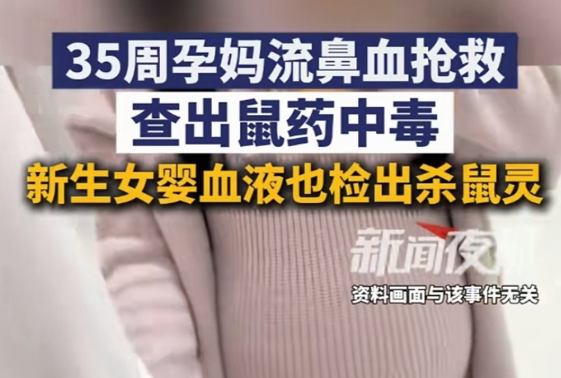 近日,广东深圳,一名孕35周的准妈妈突然在家中流鼻血,原本以为只是普通的孕期不适,却没想到背后隐藏着令人震惊的真相。送医抢救的过程中,医生们发现她体内竟然含有鼠药成分--杀鼠灵。