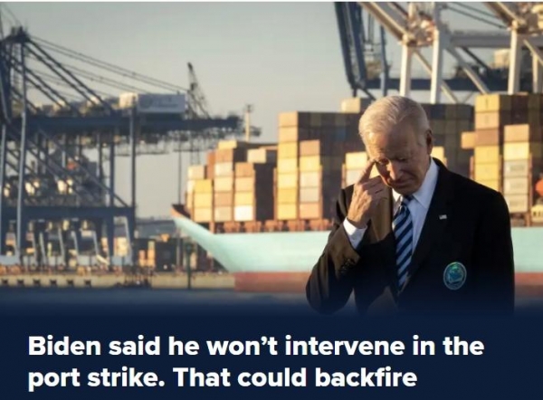 而如果不干预呢?经济压力只会越来越大,港口一停,美国国内的供应链必然遭受严重冲击。通胀问题已经让拜登的支持率疲软,再加上这场罢工带来的货物短缺,物价只会变得更加高企。