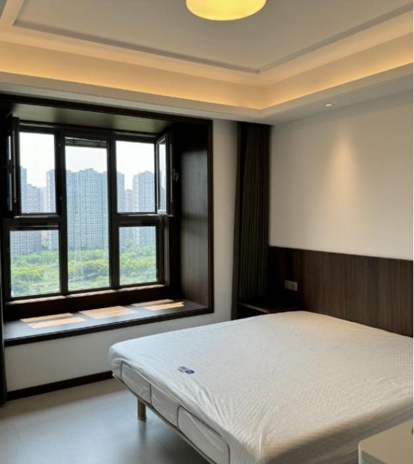 卧室顶部做了回型吊顶,配合一圈灯光,夜晚的氛围感确实不错。