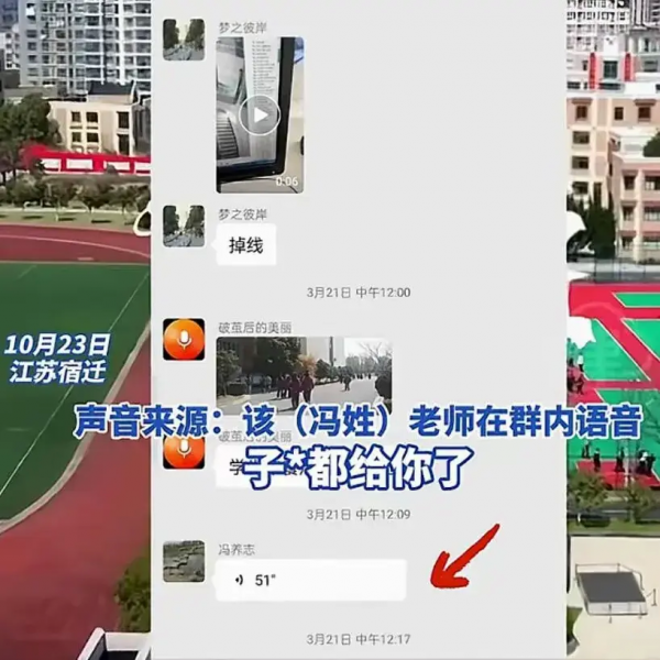 一位姓冯的男教师,不小心把一条长达 51 秒的不雅语音发到了学校的安保工作群里。这可真是一颗"惊雷",瞬间在群里炸开了锅。据了解,语音内容简直让人咋舌,冯老师疑似在和情人聊天诉苦。