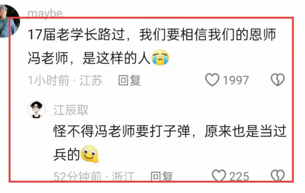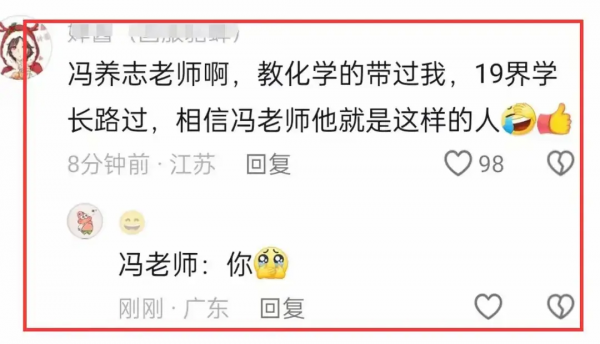 • 2019 届的学生路过表示似乎不太惊讶,并选择相信冯老师"就是这样的人",言语中透露出一种对老师行为的无奈和失望。