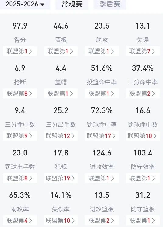 上海男篮本赛季的统治力堪称恐怖,在目前的积分榜上,上海男篮以26胜4负的战绩排名第一。不仅如此,打完第30轮的比赛后,上海男篮已经提前12轮锁定了季后赛名额,成为本赛季首支晋级季后赛的球队。而且需要注意的是,上海男篮输掉的这四场比赛,其中两场是在赛季之初,当时上海男篮的状态并不好,上海球迷甚至喊卢伟下课了。但在上海男篮步入正轨后,其他球队已经很难给他们造成威胁了。
