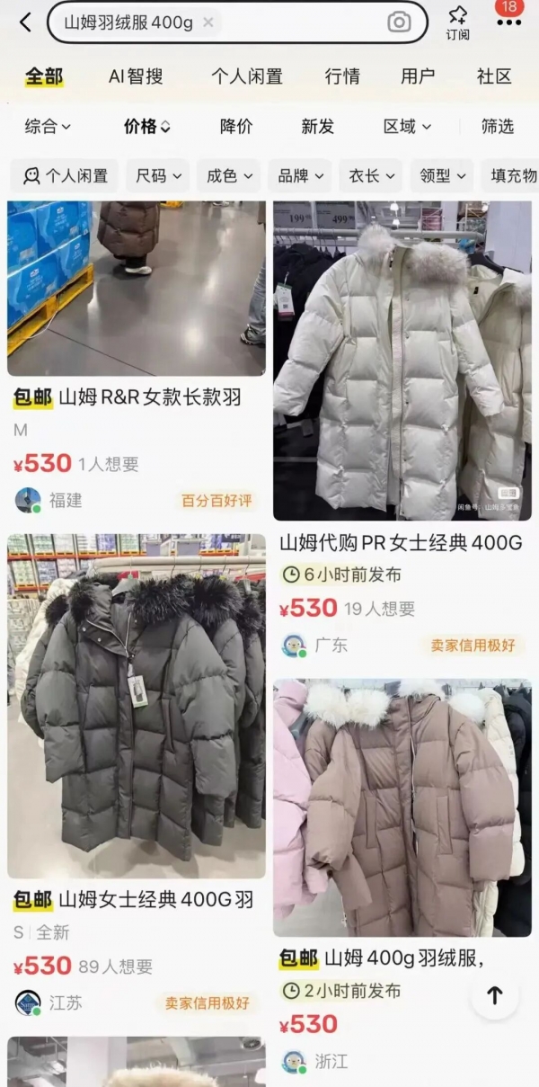 事实上,这个冬天,不仅是山姆的羽绒服火了,胖东来580元的大被子羽绒服、Costco(开市客)359.9元的32D短款羽绒服,也成了不少人的"过冬新宠"。一时间,"中产涌入超市抢300元羽绒服"词条登上热搜。